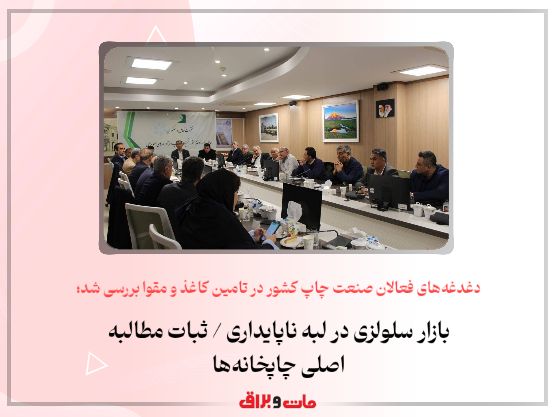 دغدغههای فعالان صنعت چاپ کشور در تامین کاغذ و مقوا بررسی شد؛ بازار سلولزی در لبه ناپایداری/ثبات مطالبه اصلی چاپخانهها مشاهده 1404/09/23 بدون دیدگاه