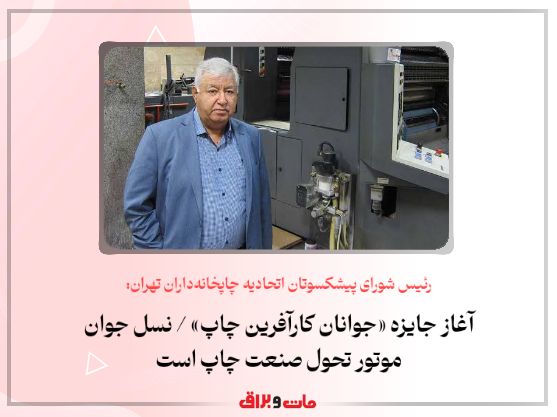 رئیس شورای پیشکسوتان اتحادیه چاپخانهداران تهران: آغاز جایزه «جوانان کارآفرین چاپ» / نسل جوان موتور تحول صنعت چاپ است مشاهده 1404/09/26 بدون دیدگاه