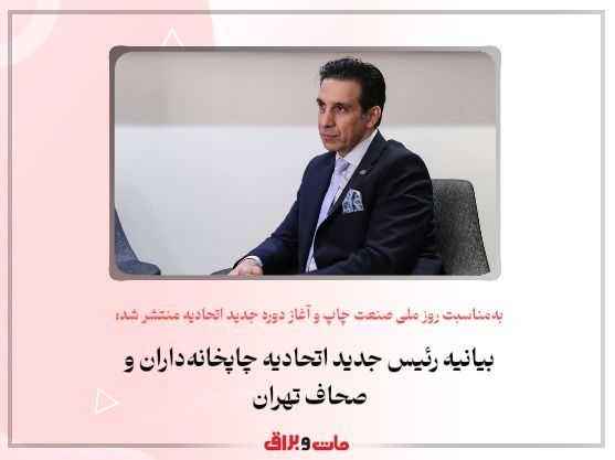 بهمناسبت روز ملی صنعت چاپ و آغاز دوره جدید اتحادیه منتشر شد؛ بیانیه رئیس جدید اتحادیه چاپخانهداران و صحاف تهران مشاهده 1404/06/12 بدون دیدگاه